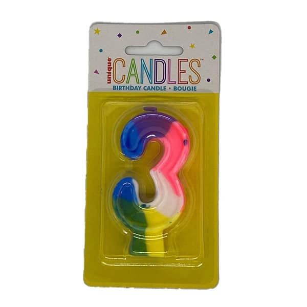 Unique Rainbow Numeral 3 Candle