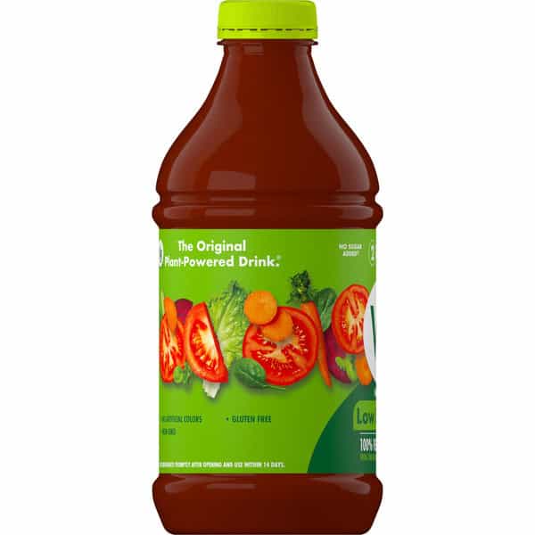 Savor the plant based goodness of V8® Low Sodium Original 100% Vegetable Juice. A satisfying alternative to other juices, low sodium V8® juice is made with concentrated tomato juice along with the juices of seven other vegetables. The result is a 100% juice with a distinctly rich, savory flavor and 78% less sodium than the original. Delicious and nutritious, V8® vegetable juice is an easy way to help get your daily recommended veggies. Each 8 fl oz serving contains 2 servings of vegetables and is an excellent source of Vitamins A and C. Our veggie juice is also gluten free and non GMO with no sugar added.* Enjoy V8® on its own, over ice, or seasoned with pepper and adorned with your favorite garnishes. It’s great as a breakfast drink, afternoon snack, or post workout drink. In addition to sipping it as a vegetable drink, you can also use V8® low sodium juice to add flavor and nutrition to a variety of dishes. Try it as a vegetable soup base, substitute it for broth in stews, or use it as a marinade. (*Not a low calorie food; see nutrition panel for sugar and calorie content)