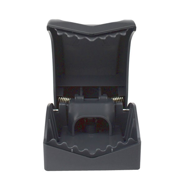 Hidden Trip Mechanism! Bait hood must be lifted to trigger trap preventing accidental triggers & bait theft. Built in bait cup allows for ideal bait placement, every time. Instructions: 1. Bait trap – Open and apply bait to bait cup on underside of trap. 2. Set Trap – Squeeze the trap firmly until it clicks and the trap locks into place. 3. Place Trap – Where signs of rodent activity are visible and parallel along the wall. 4. Dispose – Hold trap at rear and squeeze to release and discard rat. 5. Attractant Application – Re-apply attractant to your Safe-Set trap using the attached cup.