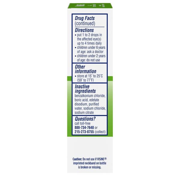 Relief is in sight with Visine A.C Itchy Eye and Redness Relief Eye Drops and eye astringent to provide temporary relief of discomfort and redness of the eye due to minor eye irritations. The eye drops for irritated eyes are formulated with two active ingredients to help relieve red, itching, watery eyes. Redness relief eye drops from Visine, a brand backed by 60 years of expertise, with a formula that contains .05% tetrahydrozoline hydrochloride redness reliever, and 0.25% zinc sulfate astringent. Keep this small bottle of sterile eye drops easily that slips into a bag or purse, so you can soothe your red, itchy, watery eyes anywhere. To use these eye drops, put one to two anti itch eye drops in the affected eye(s) up to four times daily. Stop use and ask a doctor if you feel eye pain, changes in vision occur, redness or irritation of the eye lasts, or the condition lasts more than 72 hours. For ages 6 and older
