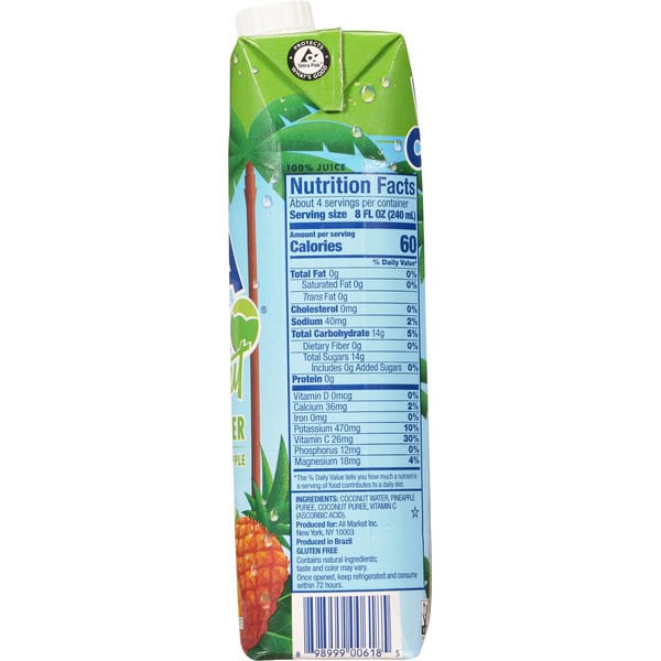 Coconut Water, Pineapple Puree, Coconut Puree, Vitamin C (ascorbic Acid).