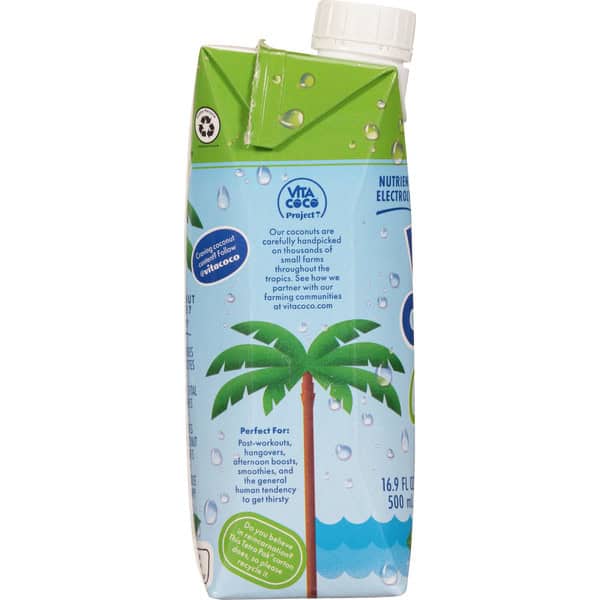 Nutrients & electrolytes. Not from concentrate. Coconut water? Why? Replenishes electrolytes. Provides vital nutrients. Hydrates with coconut goodness. Makes taste buds happy. Contains natural ingredients; taste and color may vary. Please recycle. FSC: Mix – Board. Do you believe in reincarnation? This tetra pak carton does, so please recycle it. Vita Coco Project: Our coconuts are carefully handpicked on thousands of small farms throughout the tropics. See how we partner with our farming communities at vitacoco.com.