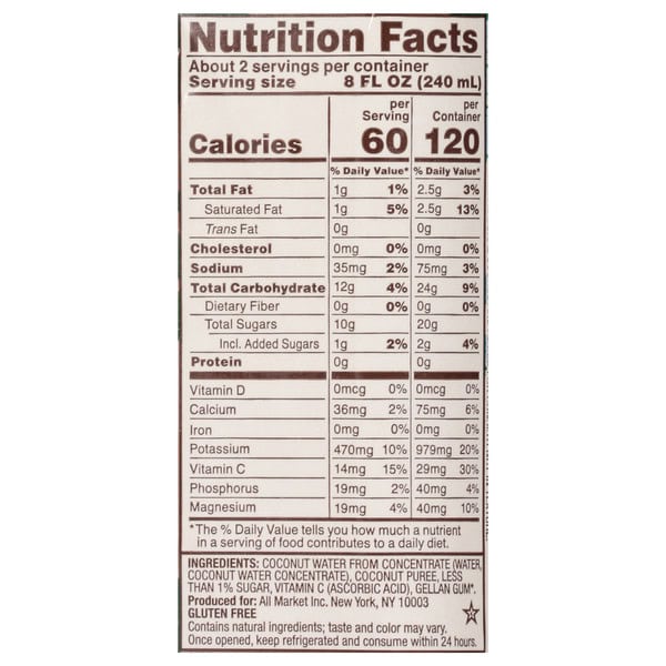 Coconut Water, Coconut Puree, Less Than 1% Sugar, Vitamin C (ascorbic Acid), Gellan Gum*.