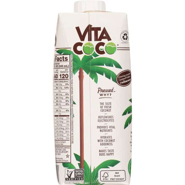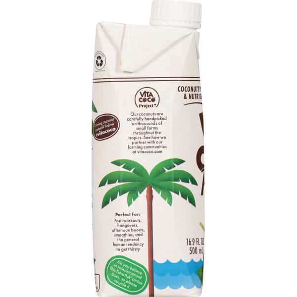 Coconutty taste & nutrients. Pressed Why? The taste of fresh coconut. Replenishes electrolytes. Provides vital nutrients. Hydrates with coconut goodness. Makes taste buds happy. Contains natural ingredients; taste and color may vary. FSC: Mix – Board. Do you believe in reincarnation? This Tetra pack carton does so please recycle it. Please recycle. Vita Coco Project: Our coconuts are carefully handpicked on thousands of small farms throughout the tropics. See how we partner with our farming communities at vitacoco.com.
