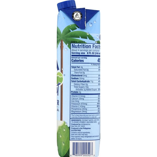 Coconut Water, Less Than 1% Sugar, Vitamin C (ascorbic Acid).