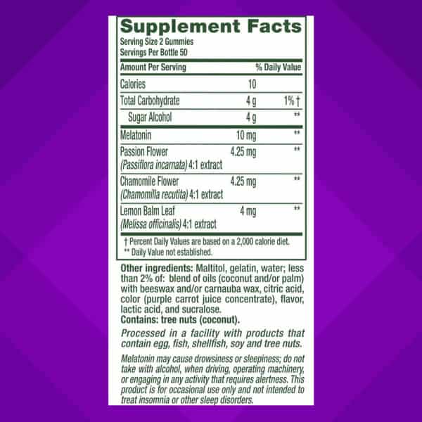 Suggested Use: Adults take two (2) gummies prior to sleep event. Chew thoroughly before swallowing.