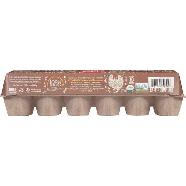 This carton of Vital Farms pasture-raised eggs holds USDA certified organic, grade A eggs that come from our network of small family farms!