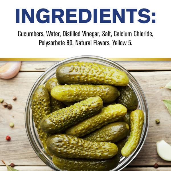 Cucumbers, Water, Distilled Vinegar, Contains 2% Or Less Of: Salt, Calcium Chloride, Turmeric Extract (color), Polysorbate 80, Natural Flavor.