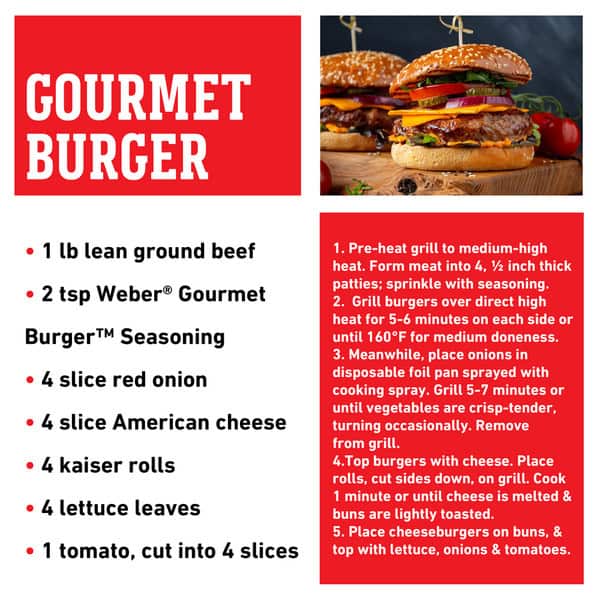 • Weber burger seasoning made with sweet, savory and spicy ingredients to help you prepare outstanding hamburgers