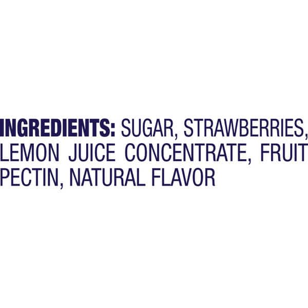 Sugar, Strawberries, Lemon Juice Concentrate, Fruit Pectin, Natural Flavor