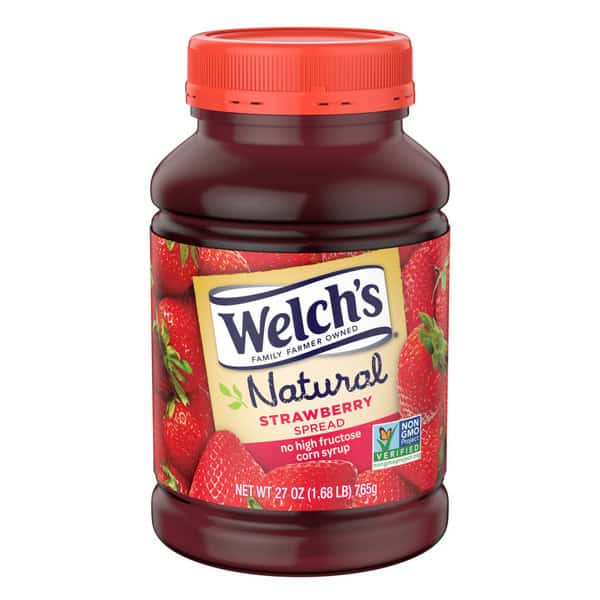 With just five simple ingredients, Welch’s Natural Strawberry Spread provides all the vibrant, juicy strawberry taste you crave with nothing you don’t — no high-fructose corn syrup, no artificial flavors or colors, no preservatives — just real, bold fruit flavor your whole family will love. Welch’s Natural Strawberry Spread is also a non-GMO food, containing no genetically modified organisms. Add the sweet farm-fresh taste of real strawberries to your toast, crackers, pancakes … we could go on. But once you taste how delicious Welch’s Natural Strawberry Spread is, you’ll have plenty of your own ideas!