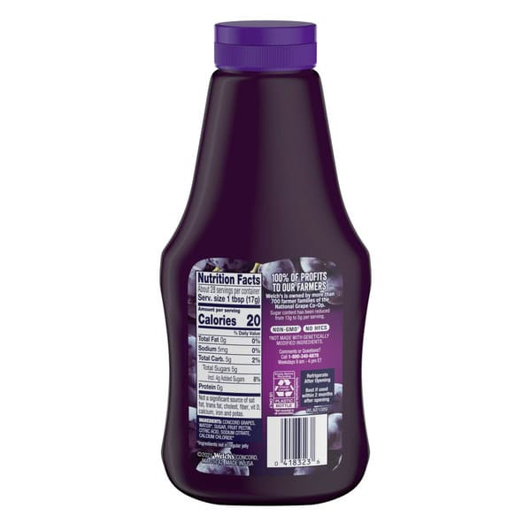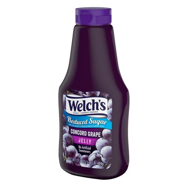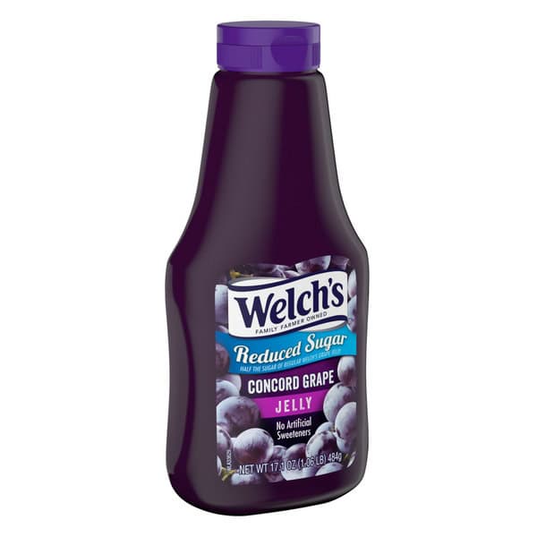Just like our traditional jelly, Welch’s Reduced Sugar Jelly is made with great-tasting Concord grapes grown on family farms. The only difference is it has half the sugar and calories! And never any high-fructose corn syrup or artificial sweeteners. Every bottle of Welch’s Reduced Sugar Concord Grape Jelly contains the bold, sweet fruit taste you and your family have enjoyed for years. We make our jelly in the U.S.A. with Concord grapes grown on American farms. And 100% of our profits go to the family farmers who own Welch’s.