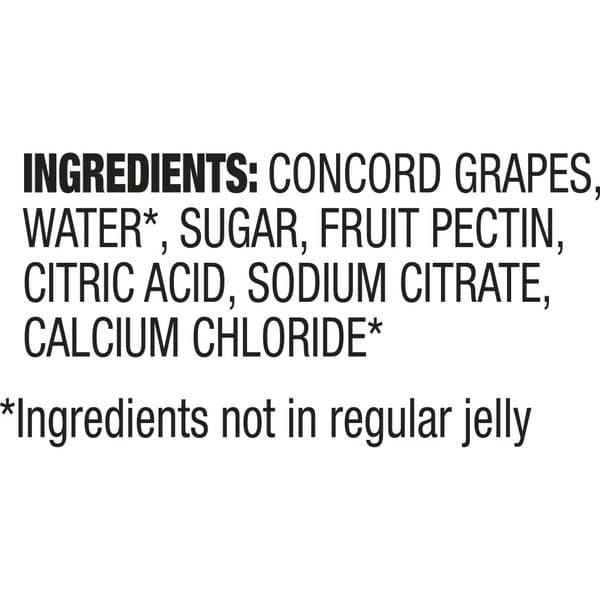 Concord Grapes, Water*, Sugar, Fruit Pectin, Citric Acid, Sodium Citrate, Calcium Chloride*