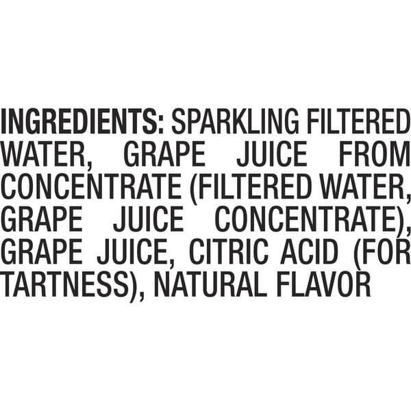 Sparkling Filtered Water, Grape Juice From Concentrate (filtered Water, Grape Juice Concentrate), Grape Juice, Citric Acid (for Tartness), Natural Flavor
