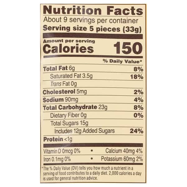 Glucose Syrup (from Wheat Or Corn), Sugar, Vegetable Oils (from Palm And Shea), Condensed Skim Milk, Sorbitol Syrup (from Wheat Or Corn), Dry Whole Milk, Lactose, Cream, Contains Less Than 2% Of Whey, Butter, Reduced Minerals Whey, Brown Sugar, Salt, Soy Lecithin Sugar Cane Syrup, Natural And Artificial Flavors, Caramel Color, Hazelnuts.