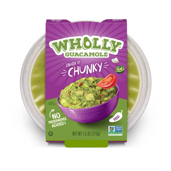Take the delicious flavor of our guac anywhere you go with WHOLLY Guacamole Family Size Chunky medium-flavored guacamole bowl. Made with 100 percent Hass avocados, hand-scooped at the height of freshness, and a kick of serrano pepper, this medium-spiced recipe is sure to sizzle your senses. Add WHOLLY Guacamole to your sandwich or salad, create the perfect veggie dip, or enjoy it with tortilla chips for a tasty snack. Always ready to eat and with no preservatives added, we perfected the art of guacamole by keeping the nutrition and benefits found in delicious avocados. Our guac is gluten-free and Non-GMO. This 7.5-ounce, ready-made guacamole is the perfect appetizer for game night and is sure to leave your whole crowd happy.