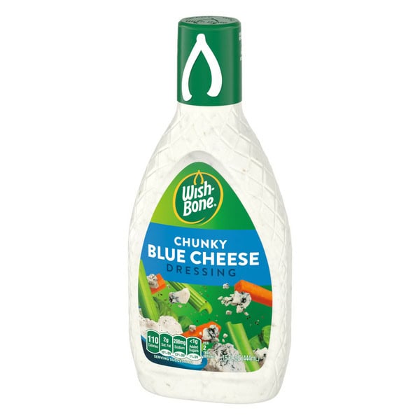 Wish-Bone Chunky Blue Cheese Dressing adds bold flavor to your favorite recipes. Chunks of real, aged blue cheese with a dash of classic herbs, spices and buttermilk make this blue cheese salad dressing irresistible. This thick and creamy salad dressing delivers great texture and flavor to all your dishes. Not only is this creamy blue cheese salad dressing made without high fructose corn syrup, but it is also gluten free. Pour this dressing over fresh salads, toss it in with vegetables or serve it as a dip. A 15 fluid ounce squeeze salad dressing bottle makes it easy to dispense the perfect amount. Refrigerate the dressing after opening. From chunky blue cheese to robust Italian dressings, Wish-Bone has what you need to make your dishes amazing.