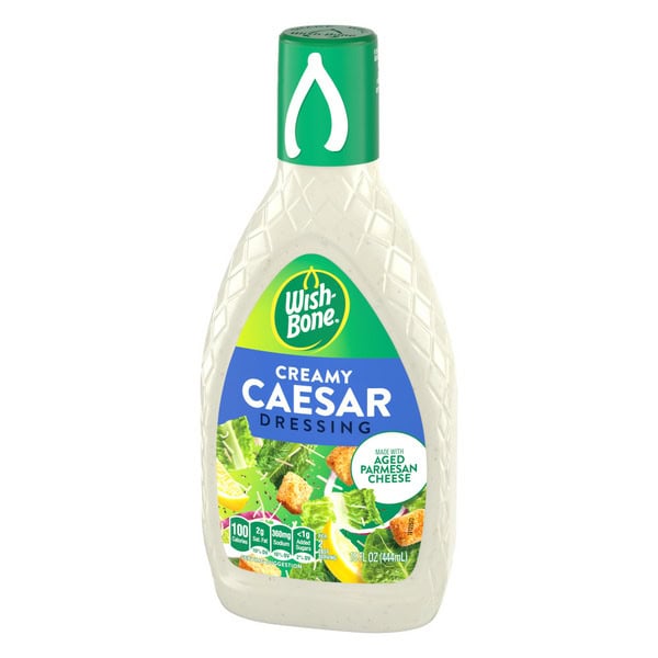 Wish-Bone Creamy Caesar Dressing adds bold flavor to your favorite recipes. Parmesan cheese, black pepper, parsley and other classic seasonings make this Caesar salad dressing irresistible. This thick and creamy salad dressing delivers great texture and flavor to all your dishes. Not only is this creamy Caesar salad dressing made without high fructose corn syrup, but it also contains no artificial colors. Pour this Caesar dressing over fresh salads, toss it in with vegetables or serve it as a dip. A 15 fluid ounce squeeze salad dressing bottle makes it easy to dispense the perfect amount. Refrigerate the dressing after opening. From creamy Caesar to robust Italian dressings, Wish-Bone has what you need to make your dishes amazing.