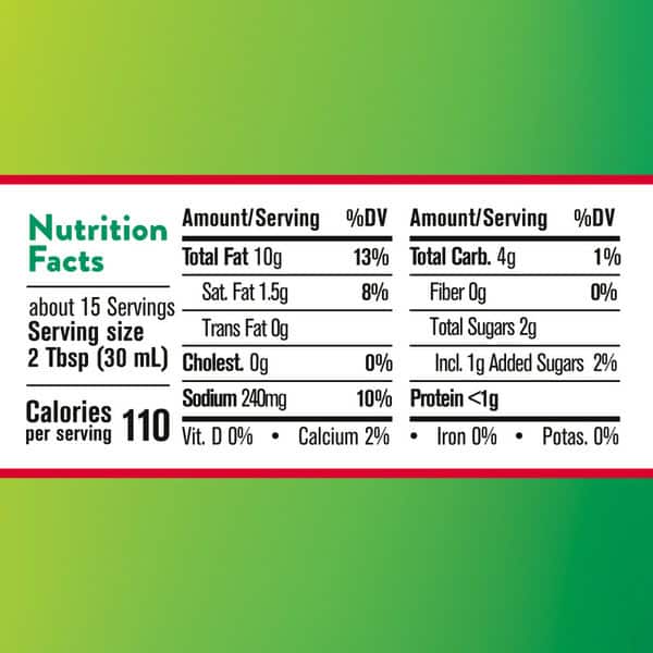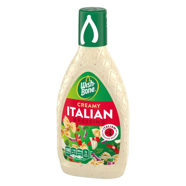 Wish-Bone Creamy Italian Dressing adds bold flavor to your favorite recipes. Buttermilk blended with Wish-Bone’s signature Italian recipe makes this creamy dressing irresistible. This thick and creamy salad dressing delivers great texture and flavor to all your dishes. Not only is this creamy Italian salad dressing made without high fructose corn syrup, but it also contains no artificial colors or flavors. Pour this Italian dressing over fresh salads, toss it in with vegetables or serve it as a dip. A 15 fluid ounce squeeze salad dressing bottle makes it easy to dispense the perfect amount. Refrigerate the dressing after opening. From creamy Italian to bold Ranch dressings, Wish-Bone has what you need to make your dishes amazing.