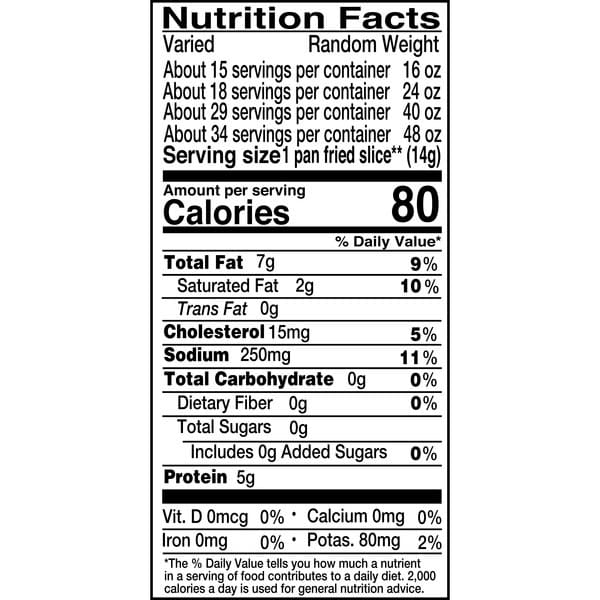 BAKE: Conventional OvenPREHEAT OVEN TO 375°F. PLACE DESIRED NUMBER OF SLICES ON A FOIL-LINED BAKING SHEET. COOK FOR 18 TO 26 MINUTES OR TO DESIRED CRISPNESS. Pan Fry: Pan FryPAN FRY 3 MINUTES PER SIDE AT 340°F.