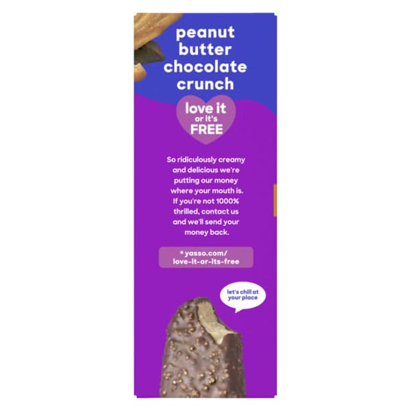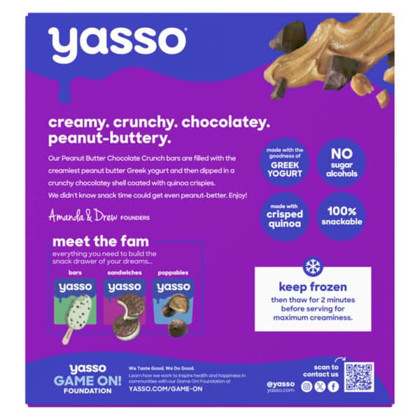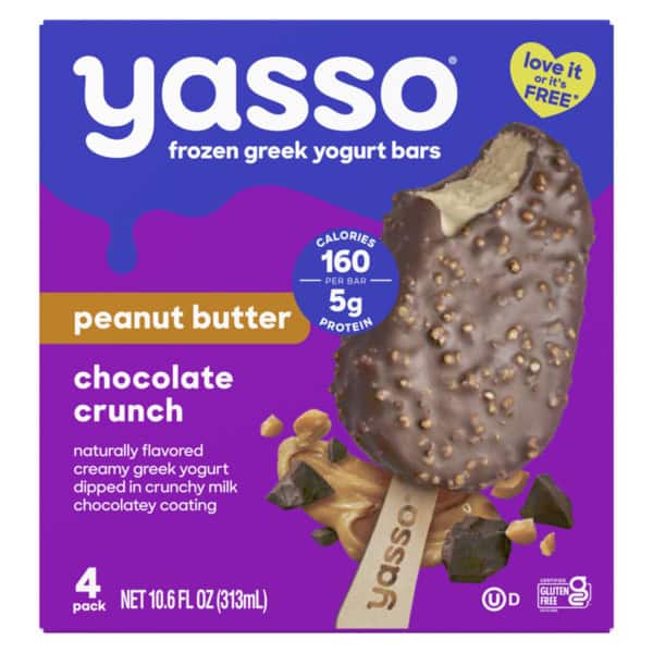 • Yasso Mint Chocolate Crunch bars are made with ridiculously creamy peanut butter Greek yogurt and then dipped in a crunchy chocolatey shell coated with quinoa crispies