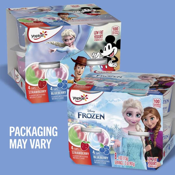 • CONTAINS: One 32 oz Variety Pack of Yoplait Disney Frozen Low Fat Kids Yogurt; Eight 4 oz yogurt cups