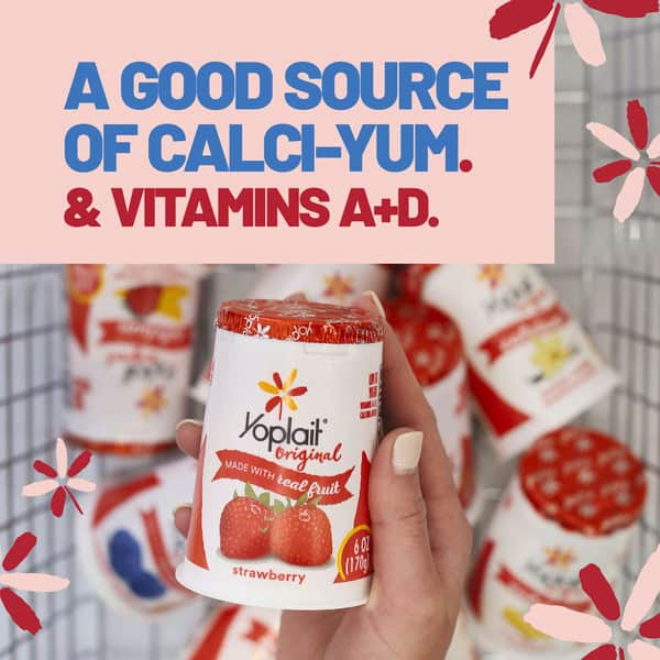 Savor Yoplait Original Mountain Blueberry Low Fat Yogurt as a delicious addition to an easy breakfast or snack! Made with real fruit, plus live and active yogurt cultures, there are no artificial flavors or colors from artificial sources, and no high fructose corn syrup. Each serving contains vitamins A and D, is a good source of calcium, and is gluten free. Enjoy the yogurt plain, pair it with granola, or blend into a refreshing blueberry yogurt smoothie. Make it a tasty alternative to Greek yogurt. Grab a convenient yogurt cup as a part of breakfast to go. Or stock up for quick snacks for the family. Also try our other Yoplait Yogurt varieties, such as low fat French vanilla yogurt and low fat mixed berry yogurt. Yoplait brings goodness to everyday moments, one serving of yum at a time.