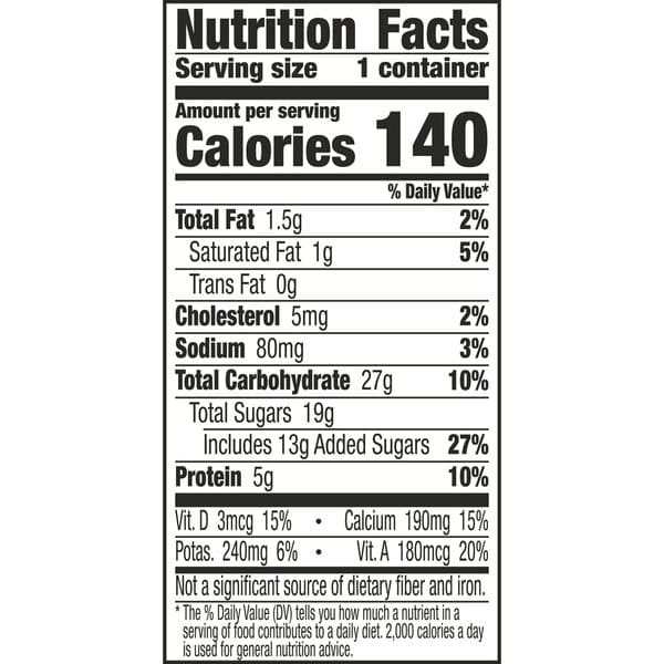 • YOGURT CUP: Single serve low fat yogurt cup with 140 calories per serving; Explore other varieties such as low fat French vanilla yogurt and low fat mixed berry yogurt