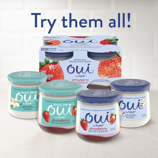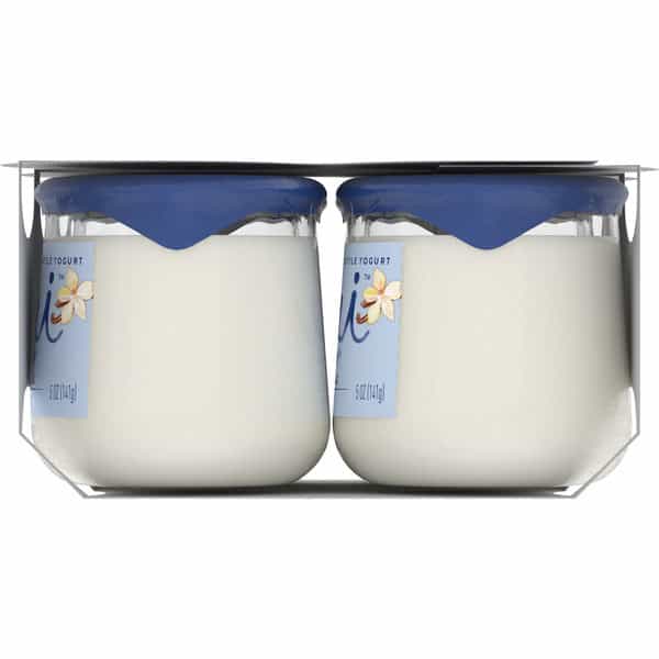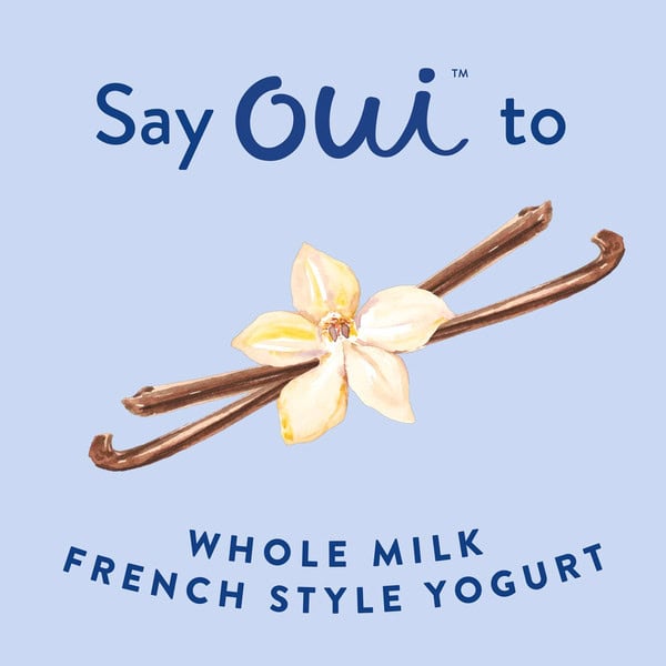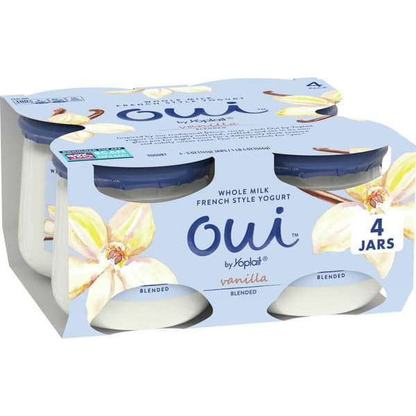 • Four pack of 5 oz glass yogurt jars of Oui by Yoplait French Style Vanilla Whole Milk Yogurt