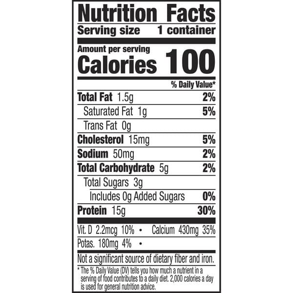 Cultured Pasteurized Ultra-filtered Nonfat Milk, Cultured Pasteurized Reduced Fat Milk, Water. Contains 1% Or Less Of: Kosher Gelatin, Sucralose, Potassium Sorbate Added To Maintain Freshness, Natural Flavor, Color (spirulina Extract, Turmeric Extract), Vitamin D3.