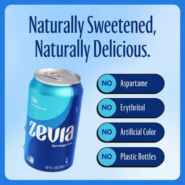 Zevia Cola delivers all the things you like about traditional cola, without any of the traditional things you don’t. With notes of citrus and spice, Zevia cola packs the perfect combination of flavors – a rare find in a better-for-you soda. Naturally sweetened with zero calories, zero sugar, you may even find yourself reaching for a second can of this better-for-you diet cola alternative. Zevia is a brand guided by its mission to address the global health challenges resulting from excess sugar consumption by offering a variety of zero-sugar, zero-calorie, and naturally sweetened beverages. All flavors of Zevia Soda contain no sugar, 0 calories, no caramel color, and are naturally sweetened with stevia so you can feel guilt-free and enjoy the drinks you love without making any compromises. Zevia Soda is a flavorful, better-for-you alternative to conventional and diet sodas.